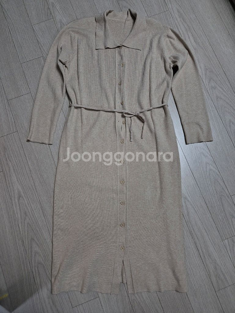 베이지컬러 F사이즈에요. 총기장 109~110 끈으로 묶어서 연출할 수 있어요. (옷에 끈 끼우는 구멍있음) 끈 묶지않으면 깔끔하게 H라인이라 저는 끈 묶지않고 입었어요. 택배가능(3000원 추가)