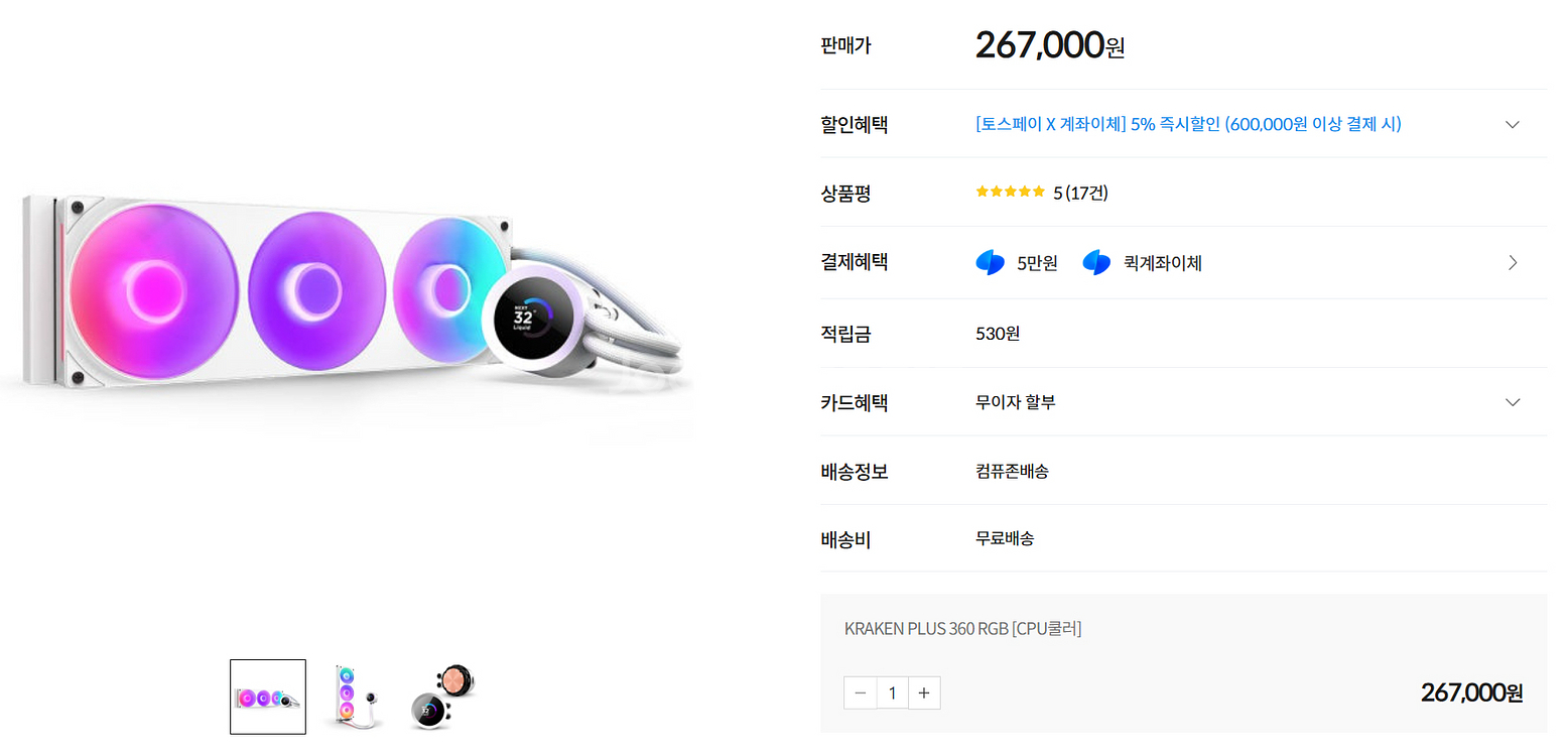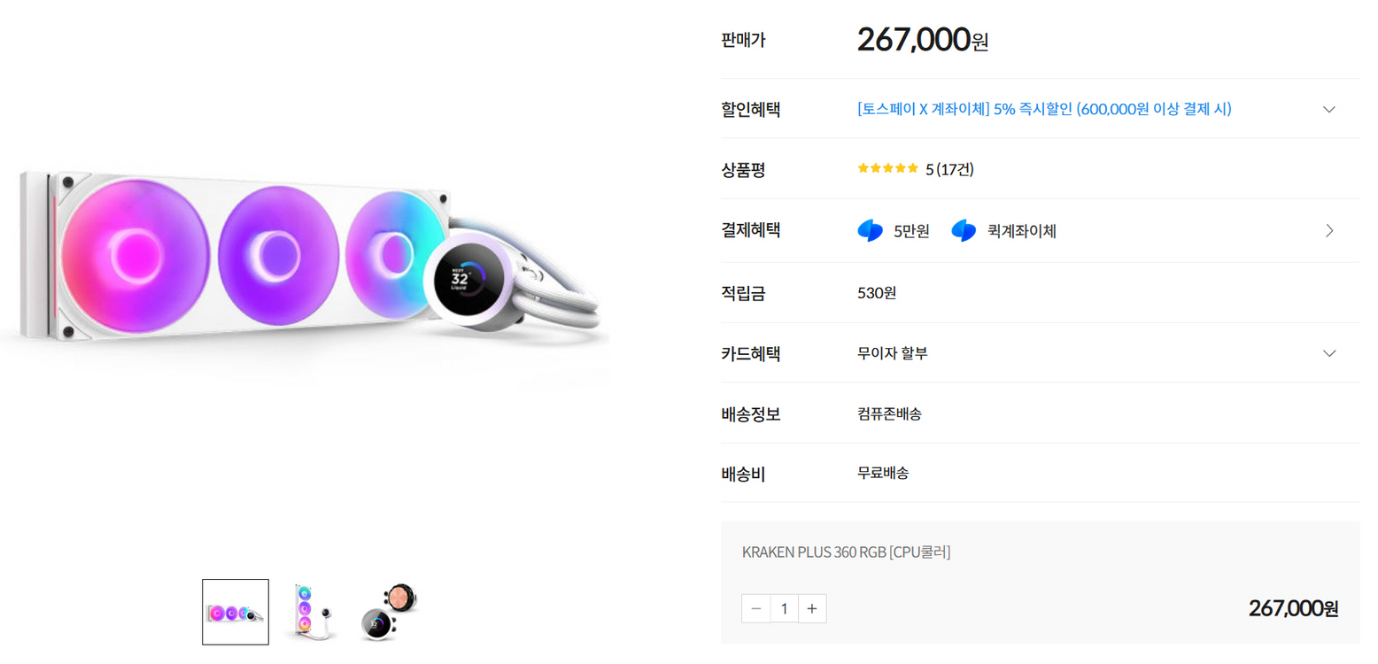 RGB 수냉쿨러입니다. 화이트 컬러에 RGB 조명이 예쁘게 들어오고 있어요. 게이밍 PC용으로 최적화된 제품입니다. 미개봉 새상품 우체국 택배가능 직거래 양양