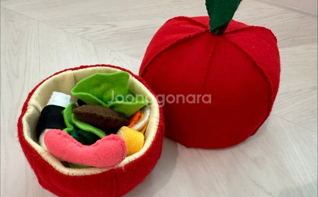 일본에서 구매 한 과일 펠트 장난감 놀이 팝니다. 큰 사과 펠트 안에 정리할 수 있어서 좋아요 :) 반값 택배 시, 택배비 제가 부담합니다. 직거래 시, 9호선 신방화역 근처에서 가능합니다 :) 010 - 992일 - 572일 문자주세요!