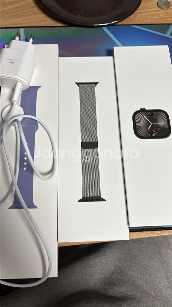 애플워치10 46mm GPS+cell 슬레이트티타늄 밀레니즈루프 배터리 효율100 구성품 전부 보유중 충전기 케이블 포함