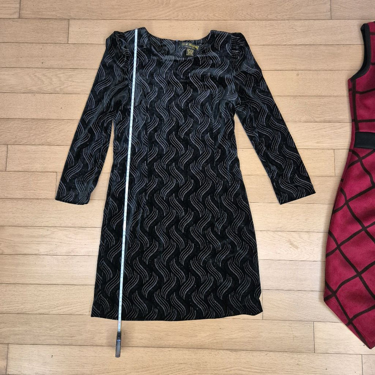 벨벳 원피스입니다 블랙 컬러에 물결 무늬 패턴이 들어가 있어 세련된 느낌을 줍니다 원사이즈 제품으로 총장 약 80cm, 가슴 단면 약 40cm, 팔 길이 약 50cm입니다. S 사이즈라 보시면 되고, 손세탁 또는 드라이클리닝이 가능하며, Made in Korea 제품입니다 중고거래 특성상 환불은 불가한 점 양해 부탁드려요🙏 ♦️예민하신분, 찔러보기❌️ ♦️택배는 특별한 일 없으면 당일 바로 접수합니다