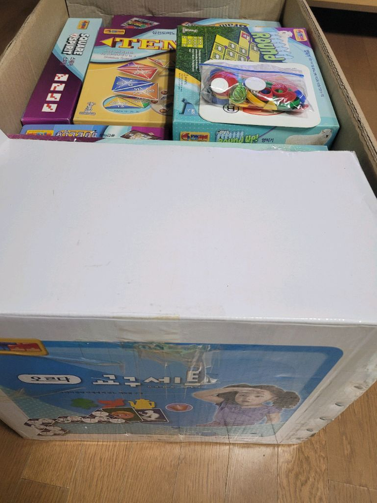 오르다 논리세트 18종 입니다. 정품 구입후 아이 한명만 사용해서 깨끗합니다. 레이오브라이트 뚜껑모서리 한쪽 테이핑, 상식의 세계 블루칩12개중 하나만 투명블루로 대체했고 , 나머지 게임들은 구성다 있습니다(칩,카드 개수 세어봄). 여분 부품은 따로 지퍼백(첫번째 사진)에 넣어놨습니다. 택포 15만원.