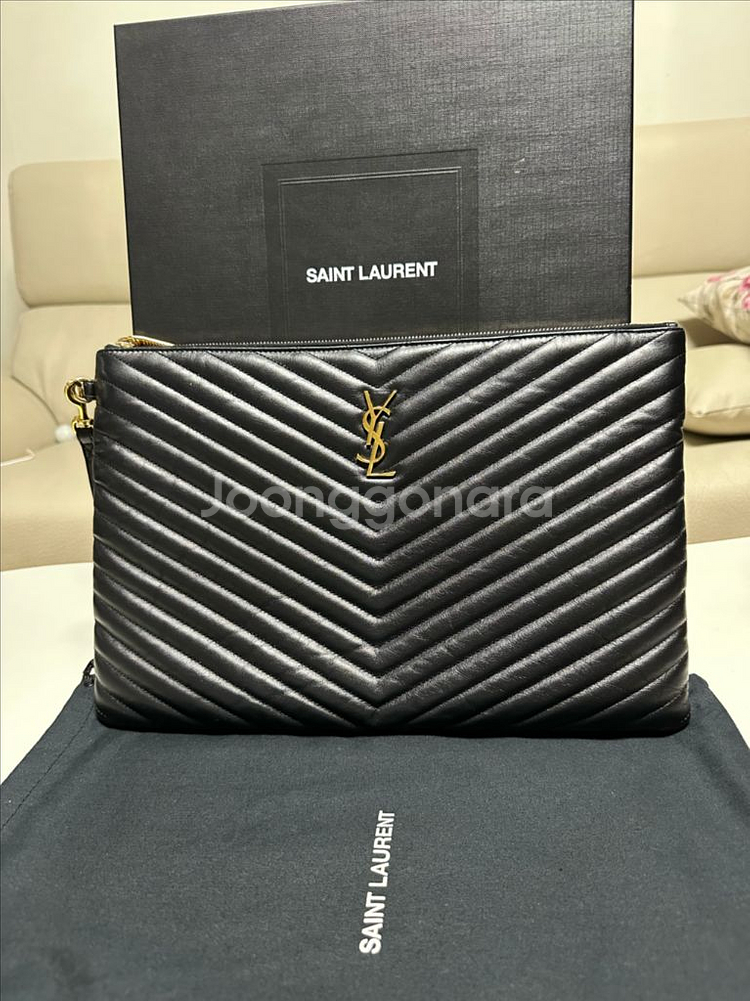 생로랑 블랙 마틀라세 클러치백 금장 라지입니다. 박스, 터스트백, 인보이스 구성이고 롯데본점에서 구매했어요. 보부상이라 산 해에 몇번 들고 보관만 했어요. 클러치 모서리 부분에 살짝 벗겨짐 말고는 상태가 좋아요. 가격대 있는 물건이라 왠만해서 직거래 원합니다! 직거래는 이문동이고 주말에만 가까운 동네는 제가 근처로 갈게요:) ✔️환불X, 신중한 구매 부탁드립니다:)