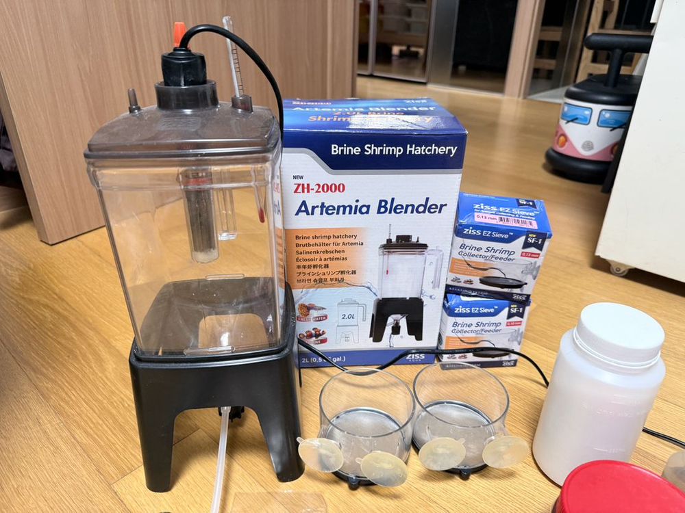 지스 브라운쉬림프 부화기, 거름망, 자석봉 등등 브라운 쉬림프 끓이는데 필요한것 모두 다 있어요. 거름망은 1.3mm, 1mm이고 이것만 있으면 잘걸러져요. 브라운쉬림프 프리미엄 DTI 셉아트 소분 200g 함께 팝니다. 겨울에 구매했고 냉동 보관해놨어요. 나눠서 팔지 않습니다. 직거래 고양스타필드 근처 반택 + 2500원 일택 + 4500원