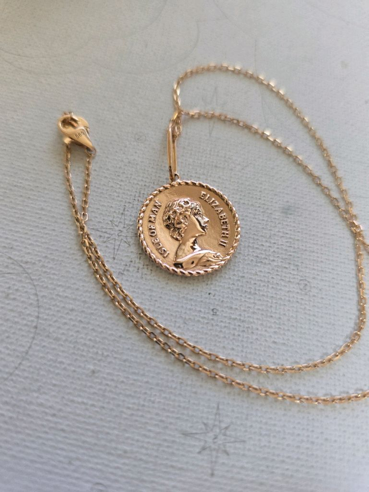 14k 핑크골드 목걸이 40 센치구요 체인 도 저렴이가 아니라 이뻐요~ 코인 고리빼고 2센치정도라 사이즈도 적당해요^^ 코인이 아주 이뻐용^^ 8.36g 정도 2.23돈정도 금 아닌경우 제외 교환 환불없어요