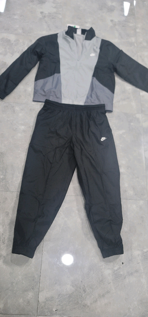 나이키 스포츠웨어 클럽 우븐 트랙 수트 트레이닝복 세트 HJ1986-010 모델입니다 블랙과 그레이 컬러 조합으로 세련된 디자인이에요 사이즈는 XL(105)이며, 새제품으로 택도 그대로 붙어있습니다 정가는 93,000원입니다 가볍고 편안한 착용감으로 일상복이나 운동복으로 활용하기 좋습니다