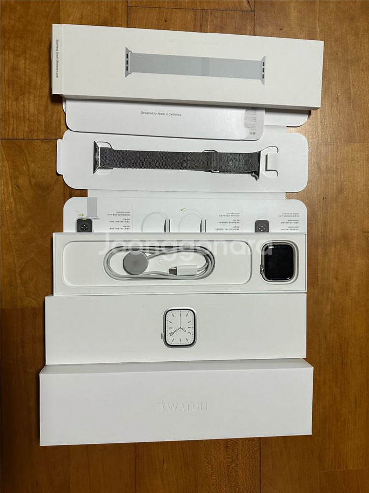 애플워치7 스테인리스 실버 45mm 판매해요. 박스와 구성품 모두 풀박스에요 배터리 효율은 81% 입니다. 중고제품 특성상 생활기스는 있으나 디스플레이에 큰 찍힘이나 스크레치는 없습니다. 기타 문의사항은 채팅 부탁드립니다. 채팅 3개 이내로 쿨거 해주시면 택포 해드려요