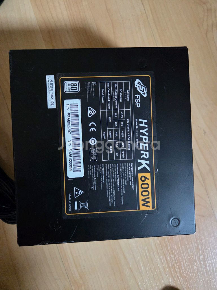 fsp HYPERK 600w 파워서플라이 작동 잘됩니다 조립후 미사용 먼지도 없어요.