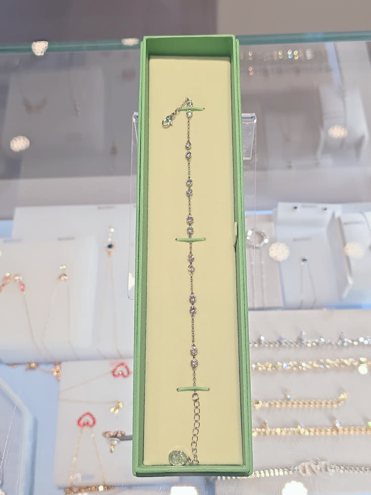 스와로브스키 팔찌에요 구매 후 한번도 착용 안한 새상품이구요 ( 보증서 쇼핑백 케이스 ㅇ) 심플해시 데일리로도 좋고 다른 제품이랑 레이어드용으로도 좋아요 돌아가도 거의 360도 스톤이 있어서 어색함도 없구요 택포가 48000원에 내놓을게요 에눌X ■ 매장서 구매한 제품이니 정품문의 사양 ■ 제품에 하자 X 한 교환,환불 불가