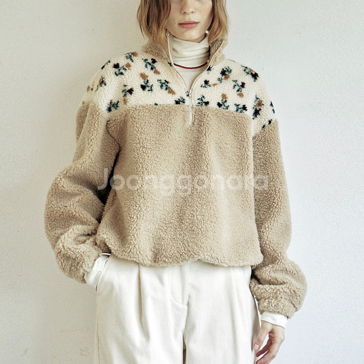 엽페(YUPPE) 플라워 플리스 반집업티 프리사이즈 새상품 반품 57 기장 60 베이지칼라에 플라워 플리스 반집업티입니다 밴딩소매에 밑단 스트링있어 품 조절되요 9만 중반대 제품입니다 가격은 50000원입니다 반품불가/착불