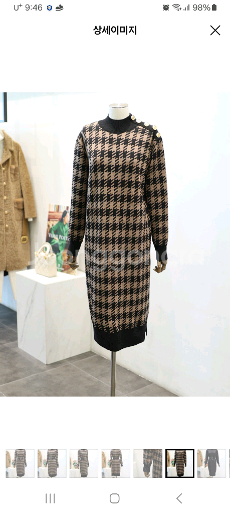 모조에스핀 하운드투스 니트 원피스 정상가658000이였어요 베이지와 블랙 컬러의 하운드투스 패턴이 세련된 느낌을 줍니다 어깨 부분의 금장 단추 디테일이 고급스러움을 더해주고, 신축성이 좋고 도톰한 니트 소재로 겨울에 따뜻하게 착용하기 좋습니다 전체적으로 깨끗하고 좋은 상태 유지하고 있습니다 벨트는 분실입니다 사이즈55~66가능 택은55 가슴반품49 총장114