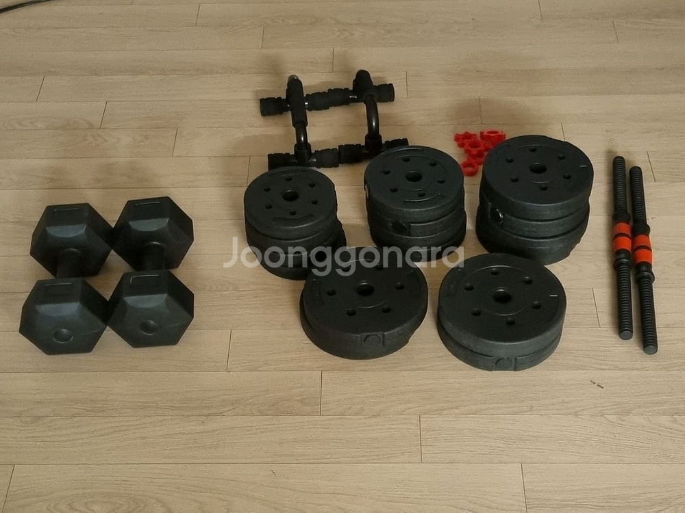 무게조절 덤벨 1.25 x 4 1.5 x 4 2 x 4 2.5 x 4 푸쉬업 바 육각 덤벨 아령 5kg x 2 일괄로 처분합니다. 상태 괜찮습니다.