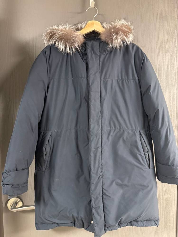 네이비 색상의 폭스퍼 패딩 점퍼 판매합니다 후드에 풍성한 실버 폭스 헤어 퍼가 달려있어 고급스러워요 충전재는 다운 90%, 깃털 10%로 따뜻하고 가볍습니다 겉감은 폴리에스터 100%로 생활 방수 및 오염에 강해요 사이즈는 95이며, 총장 80cm, 가슴 단면 51cm 입니다 전체적으로 깨끗하고 좋은 상태 유지하고 있습니다