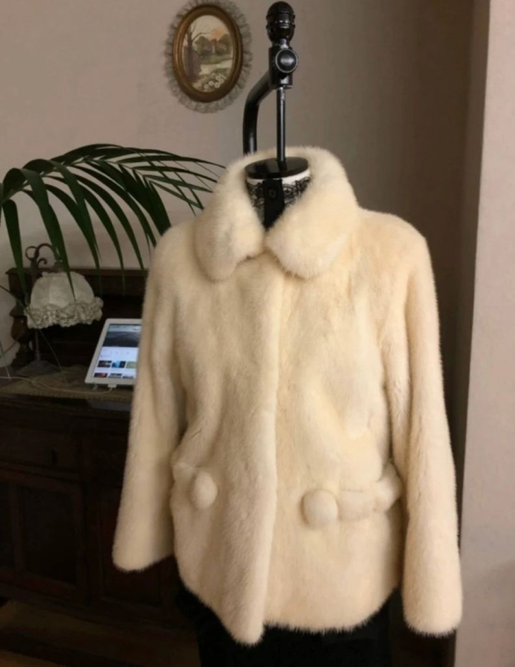 동우밍크예요. 백색 화이트 컬러는 아니고 연베이지 컬러라 더 고급스러워요. 날이 추우면 카라에 고리 달아서 목 따뜻하게 연출 가능합니다. 드라이도 동우에서 했어요. 퍼가 좋고 디자인도 특이한 이쁜밍크 입니다. 오염이나 이염 된 부분 없고 상태는 사진과 같이 좋아요. 중고거래라서 교환 환불 안됩니다.