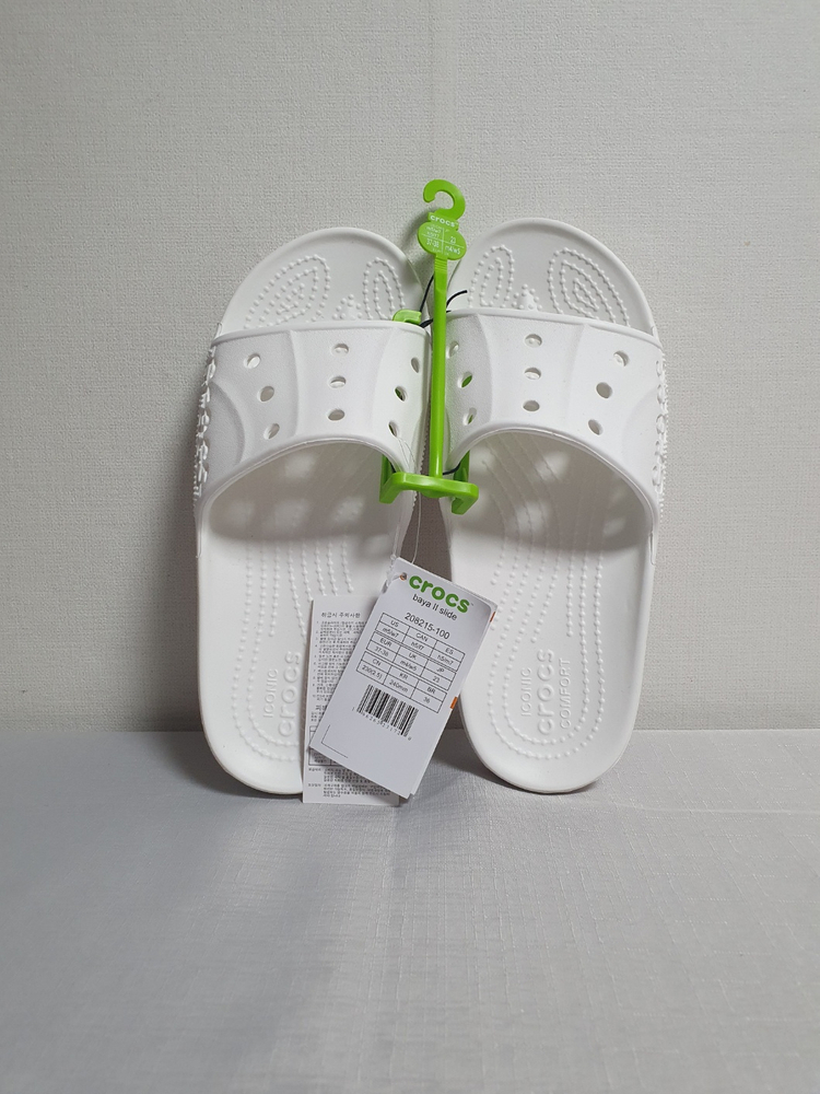 새상품 크록스 바야2 슬라이드입니다. 화이트 / 240mm, 바로 구매 가능합니다. 정품 확인 가능한 내부택과 상품 탭 사진 업로드되어 있습니다. 미시착 새상품 상태입니다. ※ 새상품 특성상 제조 과정에서 본드 자국이 있을 수 있습니다. (사용감/오염이 아닌 생산 공정 흔적입니다) ▶ 택배비 포함(택포) ▶ 새상품 특성상 사이즈 상담/시착 불가 ▶ 단순 변심·사이즈 착오 반품 불가 ▶ 제주·도서산간 추가 배송비 발생 사진 확인 후 바로 구매하시면 됩니다.