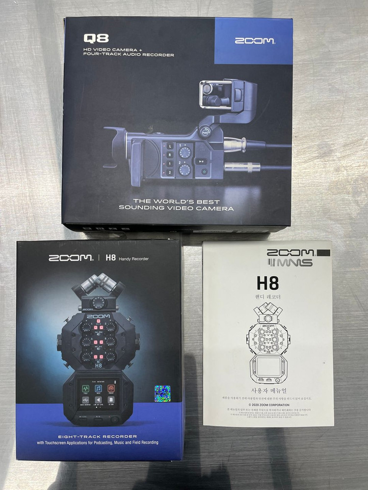 ZOOM H8, Q8 오디오/비디오 레코더 판매합니다. 3년 전 구매 후 3번 정도 사용한 제품입니다. 사용감이 거의 없는 새것이며, 풀박스로 드립니다. H8 : 450,000원 Q8 : 380,000원 편하게 연락주세요 !