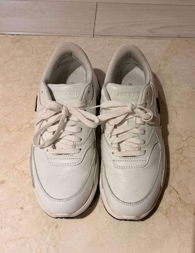 닐바렛 로고 스니커즈 37(240) 판매합니다. 군더더기 없이 깔끔한 디자인에 닐바렛 번개 로고 포인트가 작게 있어 세련된 제품입니다. 착용감도 편하고 하의에 매치하기 좋은 제품입니다. 착용을 많이 하지 않아 상태 좋고 특별한 하자부분 없습니다. 자세한 상태는 사진 참고해주세요.