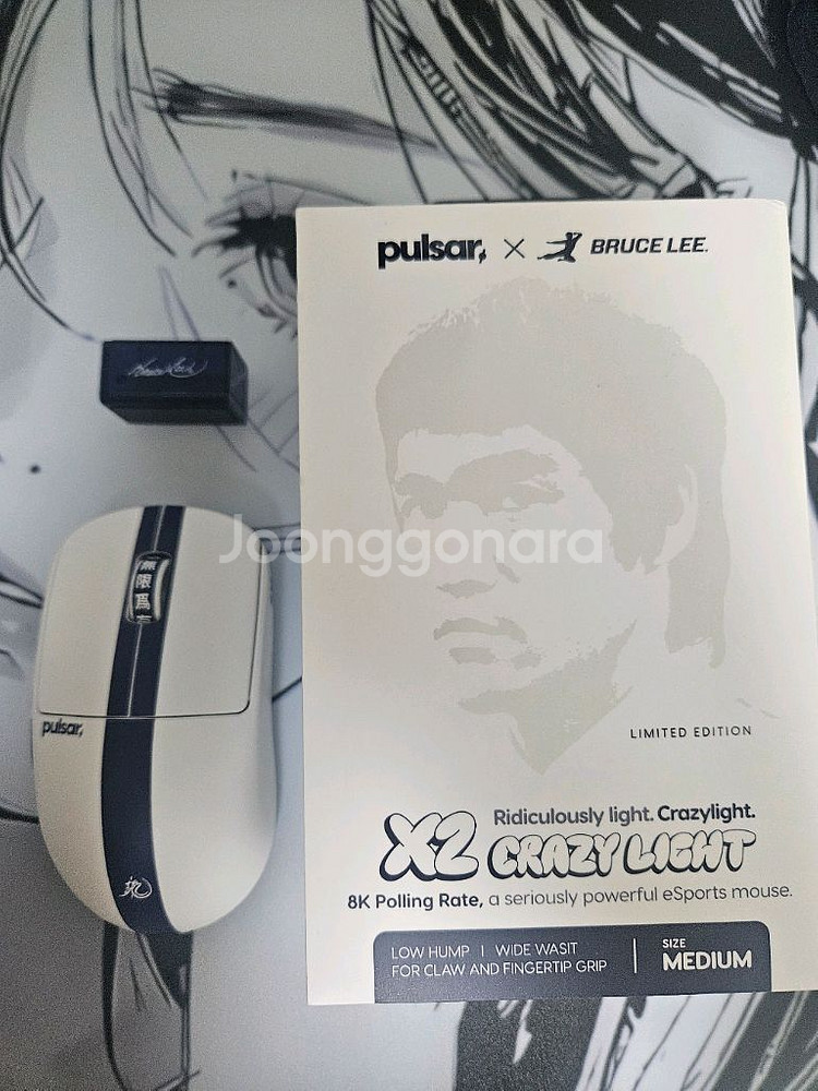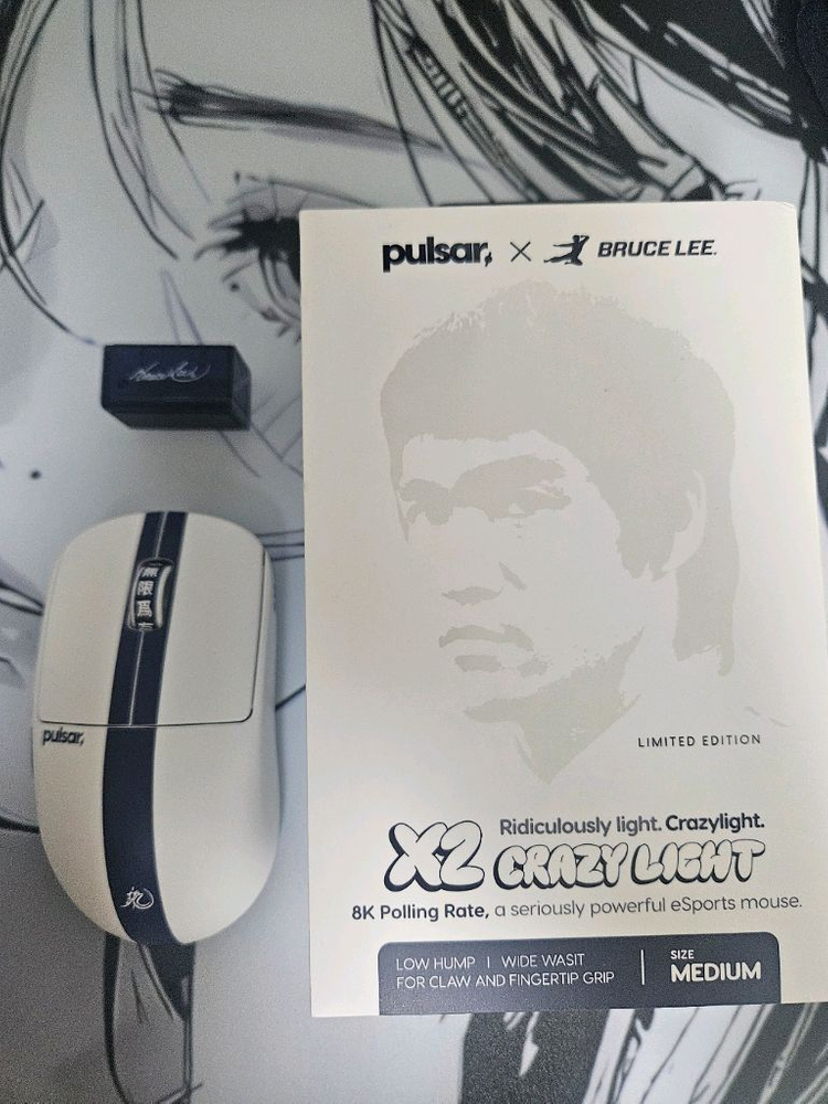 pulsar 펄사 펄크라 미디움 x2 crazylight medium bruce lee 에디션 입니다 2차구매자입니다 적응을못해서 방출합니다 구매일자 영수증기준 1월9일 찌걱임잡느라 분해 한번했습니다 외관상하자x 작동이상없고 사용감 적습니다 구성품:마우스,케이블,8k동글,도트피트