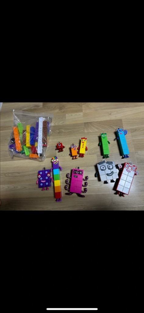아이들 숫자 학습용 장난감들이에요. 다양한 색상의 캐릭터들과 수학 교구가 포함되어 있어서 재미있게 학습할 수 있어요. 사용감은 있지만 전체적으로 깨끗한 상태입니다. 넘버블럭스 1~10 장난감입니당 에눌 교환 환불 노노