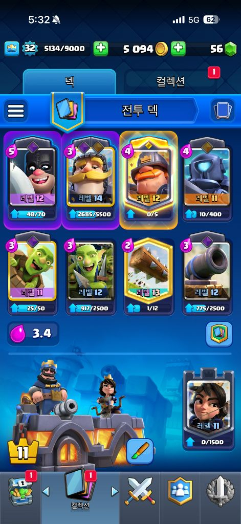 트로피 7500점이고 , 카드 5장 빼고 다 있습니다.