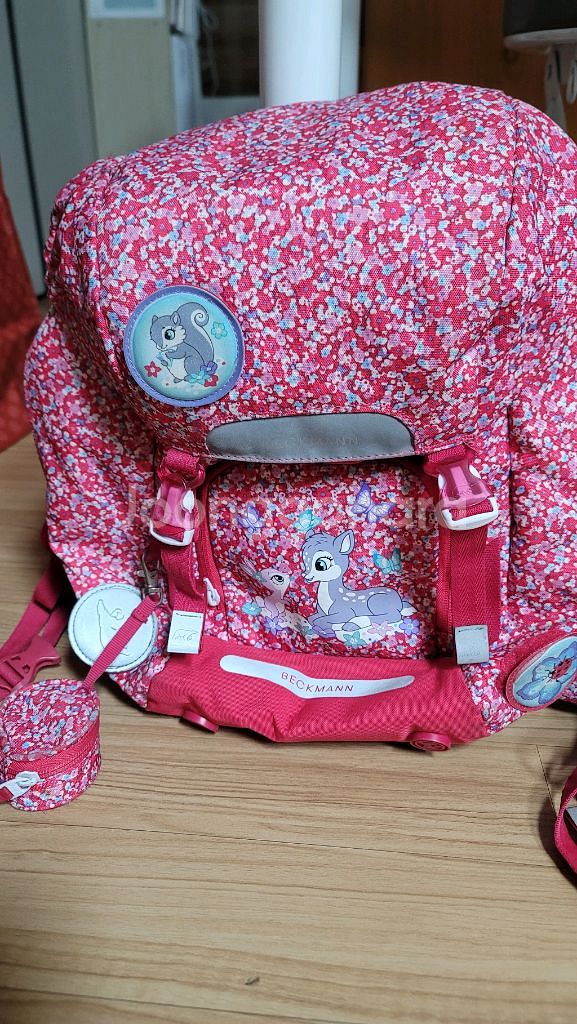 Beckmann 벡만 아동 책가방 아기사슴밤비와 유니콘 두 가지 디자인입니다 저학년아이들이 편안하게 멜 수 있도록 인체공학적으로 디자인되었어요 어두운 곳에서도 안전하게 다닐 수 있도록 반사판이 부착되어 있고, 방수 기능도 갖추고 있습니다 조절 가능한 어깨끈, 가슴끈, 힙벨트가 있어 아이의 성장에 맞춰 사용할 수 있습니다 내부 수납공간과 사이드 포켓이 있어 물통이나 작은 소지품을 보관하기 편리하며, 열쇠고리와 동전지갑도 포함되어 있습니다 초등학생 아이들에게 적합한 책가방입니다 각 20000원씩입니다.