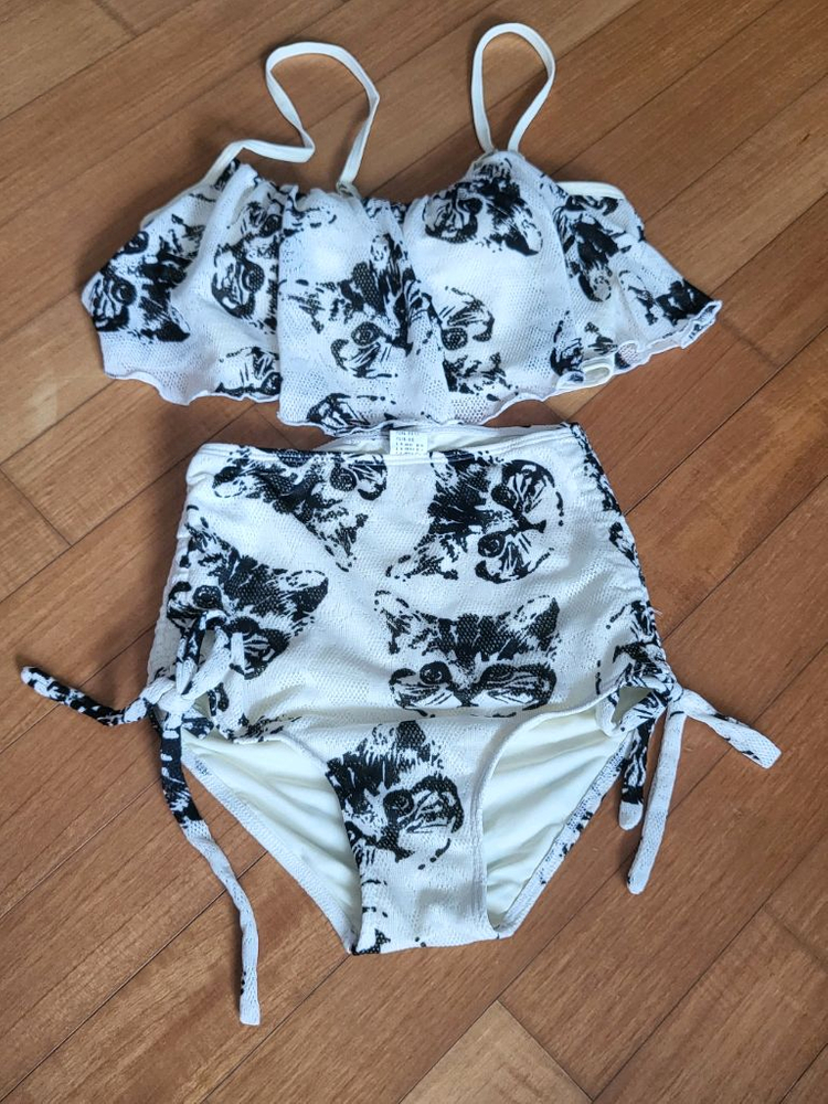고양이 2p 비키니 수영복 판매합니다. 사이즈 M / 160 / 84A 라 적혀있습니다. 새상품입니다.