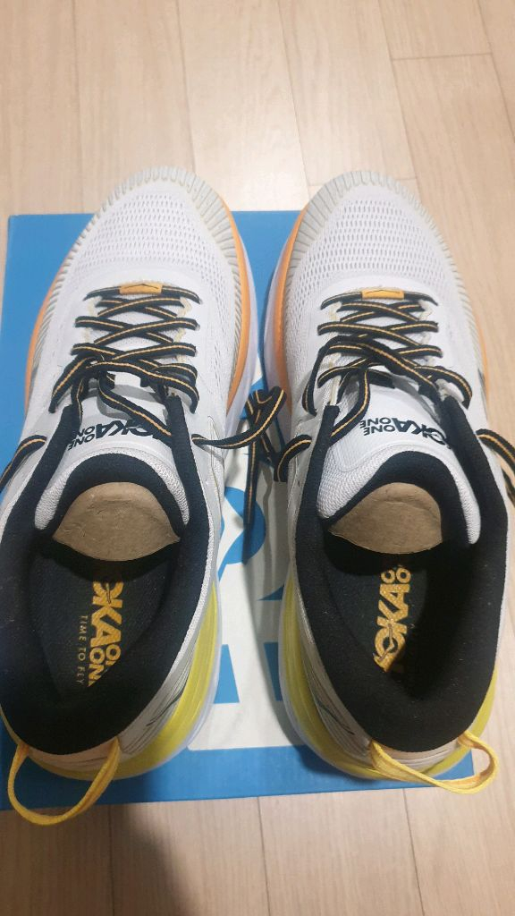 호카 최고의 쿠셔닝 제품입니다. 사이즈 285지만 요새 런닝화는 발가락 앞쪽 공간 비우는게 스타일이라 구두사이즈 265정도인 분들도 충분히 잘맞게 신으실수 있습니다. 부천지역 직거래 타지역 택배거래가능합니다