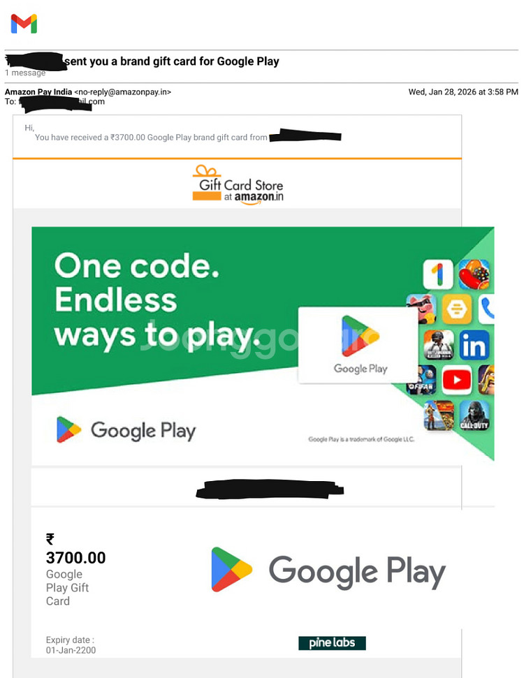 개인정보(거래정보)를 주고받는 행위는 사기에 노출될 수 있으므로 즉시 중고나라로 신고해 주세요아마존 구매 인도 구글 깊카 3700 루피 (한화 약 58000) 잘못 구매해서 20퍼 이상 내려서 내놓습니다 환불x 챗주세용