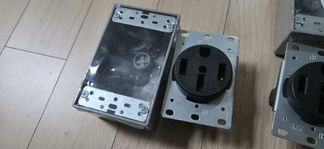 전기차 충전기용 NEMA 14-50R 콘센트 새제품입니다. - 50A 125/250V 3극 4선 접지 규격으로, 전기차 충전기에 적합합니다 - 미사용 새제품으로 상태 매우 좋습니다 플러그 1개 + 아웃렛 1개 가격입니다.