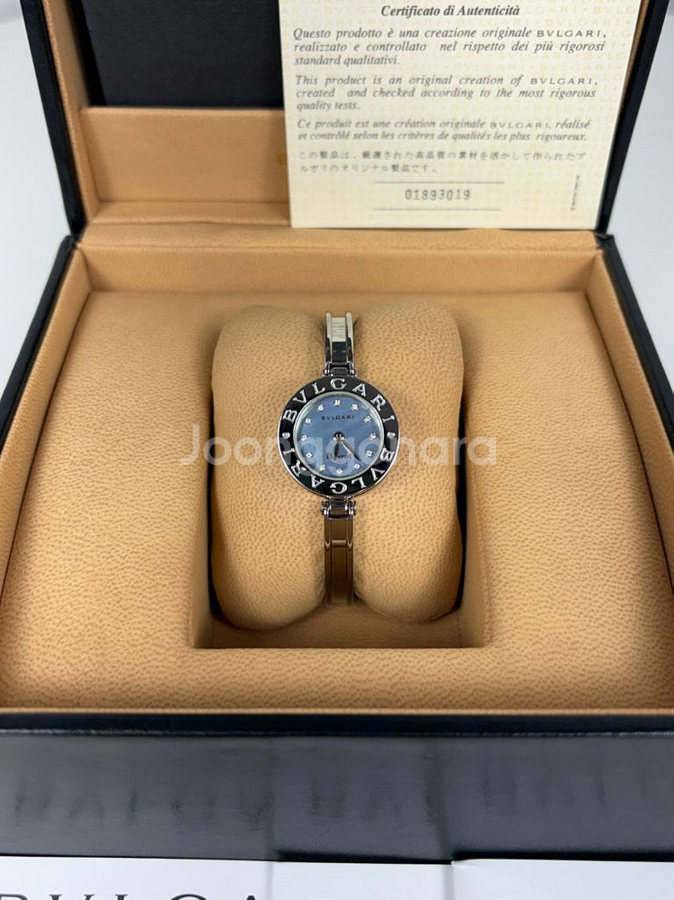 제품명 : 불가리 비제로원 다이아 12p 뱅글 여성시계 사이즈 : S(15cm) 구성품 : 박스,불가리책자,모바일감정서 상태 : A+++ 전체적으로 깨끗한 상태입니다. 자개판과 다이아 조합으로 고급스럽습니다. 뱅글 형태로 팔찌 느낌으로 사용가능하며 배터리 교체(26.1.27) 완료한 상태라 바로 사용하시면 됩니다. [S] 새상품 정도의 컨디션 [A] 사용감이 적고 눈에 띄는 하자가 없음 [B] 약간의 사용감이 있음 [D] 사용감 존재하며 하자가 있음 ✔️검수 후 하자 및 사용감 있는 부분은 최대한 사진에 업로드 해드리려 노력중입니다. ✔️중고품이기에 미처보지 못한 약간의 하자 또는 사용감이 있을 수 있는 점 참고 부탁드립니다. ✔️중고 제품 특성 상 교환 및 반품 불가합니다.