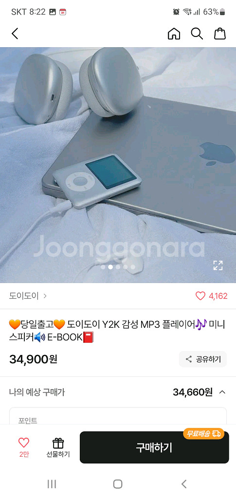 개인정보(거래정보)를 주고받는 행위는 사기에 노출될 수 있으므로 즉시 중고나라로 신고해 주세요도이도이 mp3 플레이어입니다. 해외배송이라 오래 기다렸는데, 일주일도 못 쓰고 급전때매 팔아요. 영상 시청,음악 감상,블루투스,이어폰사용,e-book까지 다 됩니다. 화질도 좋은 편이고 핸드폰에서 바로 파일 옮길 수 있어요 충전기는 처음 살 때부터 포함되어있지 않았어요 c타입 충전기 쓰시면 될 것 같아요