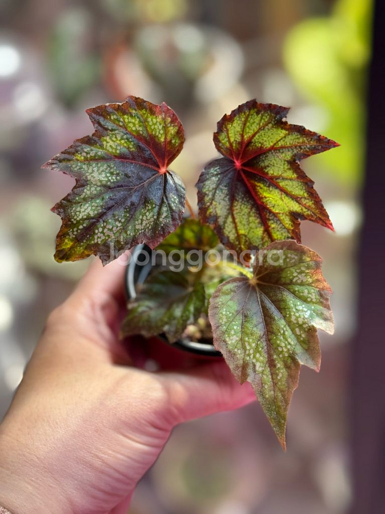 몽고메리 베고니아 입니다. 반밀폐 케어 중이예요. 신엽도 잘 내어주고 귀엽습니다. 면책 동의 하에 우체국 택배 발송 합니다.