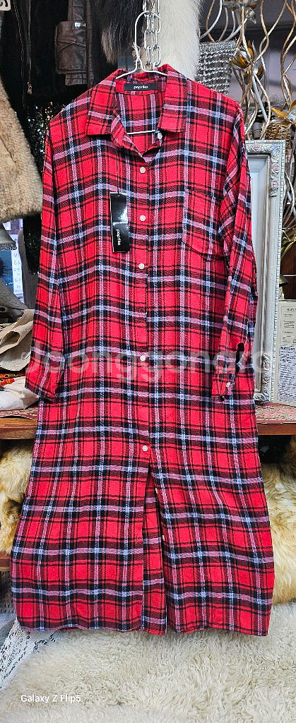 레드 체크 패턴의 롱슬리브 셔츠 원피스예요. 태그가 달려있는 새상품이고 상태 아주 좋습니다. 빈티지한 느낌의 클래식한 디자인으로 다양하게 활용하기 좋아요