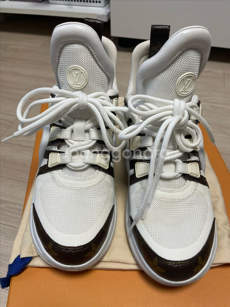 루이비통 아치라이트 스니커즈 245 사이즈 입니다지금 190만원으로 가격이 더 올랐고 세번정도 신고나가 밑창 부분에 오염은 살짝 있고 다른부분은 다 깨끗합니다 보증서는 버려서 트랜비에서 실물검수 완료까지 마쳤습니다 저는 신을 일이 없어서 판매하지만 사시는 분은 잘 신고다니시다가 트랜비에 판매하셔도 가능합니다 가품일시 100프로 환불 기프트 백 박스 포함 구성입니다 루이비통 쇼핑백에 담아드립니다 사실분만 연락주세여
