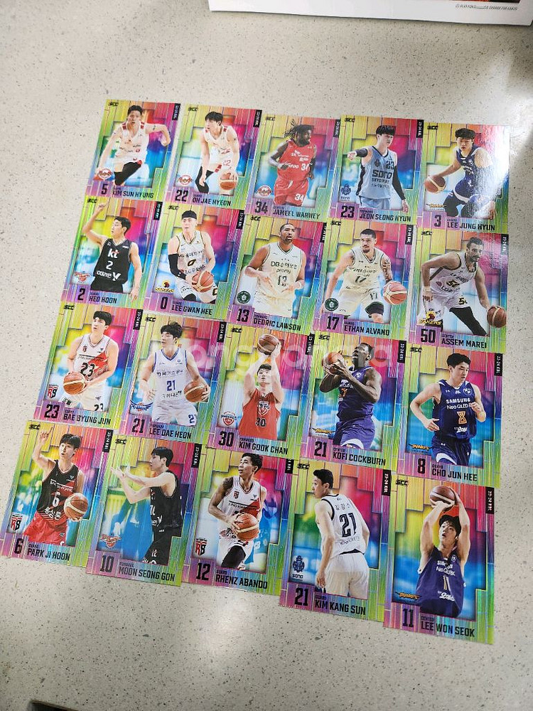KBL 전구단 전선수 파스텔 / 패러렐 / 홀로 / 노멀 카드 / 오토 판매합니다. <오토> 서울 SK - 오세근 / 원주 DB - 이선 알바노 / 대구 한국가스공사 - 신주영 <파스텔 패러렐 홀로> 원주 DB - 디드릭 로슨 (3장) / 알바노 / 김종규 수원 KT - 허훈 (2장) / 배스 / 문성곤 / 에릭 / 정성우 서울 SK - 김선형 (4장) / 오재현 (2장) / 자밀 워니 (2장) / 최부경 (2장) 창원 LG - 이관희 / 마레이 부산 KCC - 허웅 / 최준용 (2장) / 라건아 (2장) 울산 현대 모비스 - 박무빈 / 함지훈 / 김국찬 / 서명진 대구 가스공사 - 니콜슨 / 염유성 (2장) 안양 정관장 - 박지훈 / 배병준 / 정효근 / 아반도 고양 소노 - 전성현 / 이정현 / 김강선 (2장) 서울 삼성 - 이정현 (3장) / 이원석 (2장) / 코번 / 조준희 캐릭터 - 농곰이 / 공냥이 (2장) / 바스래빗 선수별로 5,000원~100,000원 차등 <패러렐 홀로 - 선수별 2장 이상 보유> 원주 DB - 디드릭 로슨 / 알바노 / 강상재 / 두경민 / 서민수 수원 KT - 허훈 / 배스 / 에릭 / 정성우 / 하윤기 서울 SK - 김선형 / 오재현 / 자밀 워니 / 최부경 / 허일영 / 오세근 창원 LG - 이관희 / 양홍석 / 마레이 / 구탕 / 양준석 / 이재도 부산 KCC - 허웅 / 최준용 / 이승현 / 라건아 / 송교창 현대 모비스 - 박무빈 / 함지훈 / 프림 / 이우석 / 김국찬 / 서명진 대구 가스공사 - 김낙현 / 벨란겔 / 니콜슨 / 이대헌 / 신승민 / 차바위 안양 정관장 - 박지훈 / 최성원 / 대릴 먼로 / 아반도 / 배병준 고양 소노 - 전성현 / 이정현 / 한호빈 / 김진유 / 김강선 / 최현민 서울 삼성 - 이정현 / 김시래 / 이원석 / 신동혁 / 조준희 캐릭터 - 농곰이 / 크블몽 선수별로 3,000원~10,000원 차등 <홀로 - 선수별 2장 이상 보유> 원주 DB - 디드릭 로슨 / 알바노 / 강상재 / 두경민 / 서민수 / 김종규 수원 KT - 허훈 / 배스 / 에릭 / 정성우 / 하윤기 / 문성곤 서울 SK - 김선형 / 오재현 / 허일영 / 오세근 / 최부경 창원 LG - 이관희 / 양홍석 / 이재도 / 마레이 / 구탕 / 양준석 부산 KCC - 허웅 / 최준용 / 송교창 / 이승현 / 라건아 / 알리제 존슨 현대 모비스 - 박무빈 / 프림 / 이우석 / 김국찬 / 서명진 / 함지훈 대구 가스공사 - 김낙현 / 니콜슨 / 이대헌 / 염유성 / 차바위 / 벨란겔 / 신승민 안양 정관장 - 박지훈 / 대릴 먼로 / 최성원 / 배병준 / 아반도 / 정효근 고양 소노 - 전성현 / 이정현 / 한호빈 / 최현민 / 김강선 / 김진유 서울 삼성 - 이정현 / 코번 / 김시래 / 이원석 / 신동혁 / 조준희 캐릭터 - 농곰이 / 바스래빗 / 공아지 / 크블몽 / 블린 / 공냥이 선수별 2,000원~5,000원 차등 <노멀 - 500원~2,000원 차등> KBL 전선수 보유중으로 구단별, 선수별 구매가능합니다. 원주 DB / 수원 KT / 서울 SK / 창원 LG / 부산 KCC / 울산 현대 / 대구 가스공사 / 안양 정관장 / 고양 소노 / 서울 삼성 / KBL 캐릭터 필요하신 선수나 구단으로 문의부탁드려요. 박스 계속 오픈중이라 사진 속에 없더라도 글 내용에 선수들 추가 예정입니다. 추가되거나 팔리면 글 바로바로 수정하니 리스트가 정확합니다. 직거래 가능하고, 반값택배 1800원 / 일반택배 4000원입니다.