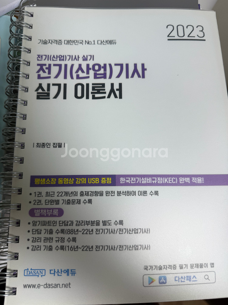 2023년 전기기사 실기 시험 대비 교재들이에요. 기본서와 기출문제집 등이 포함되어 있고, USB 동영상 강의도 함께 드려요. 중간중간 필기 포함 되어있는데 예민하신분은 피해주세요. 택포 가격이고 네고 말고 쿨거래 원합니다.