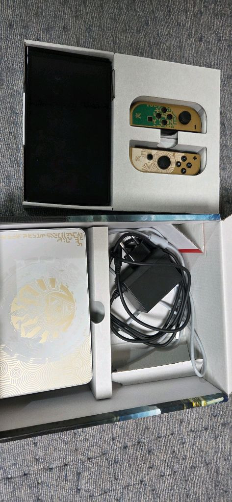 닌텐도 스위치 oled 젤다 에디션 전부 다 있는 건 아니고요 본체 조이콘 충전기 와 충전독 이 있습니다 젤다 에디션 프로콘도 팝니다