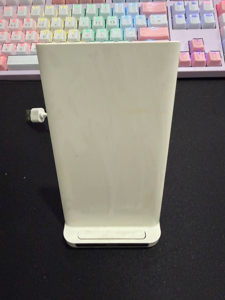 소문(SOMOON) SW-S150 듀얼코일 고속 무선충전 거치대입니다. 현재 인터넷 쇼핑몰에서 19,000원 대에 판매되고 있는 제품입니다. 선물 받아서 한 달 정도 사용했습니다. 저는 다른 제품으로 바꾸게 되어 인터넷 최저가보다 훨씬 저렴하게 반값 정도에 내놓습니다. 코일이 2개라 핸드폰을 세로로 둬도, 가로로 둬도 충전 잘 됩니다. (유튜브 보면서 충전 가능) 9V / 15W 고속 충전 지원해서 충전 속도 빠릅니다. 직거래를 선호하긴 하나, 파손면책 동의시 구매자 부담 택배 배송 가능합니다. 중고제품인 만큼 구매 후 교환이나 환불은 어렵습니다.
