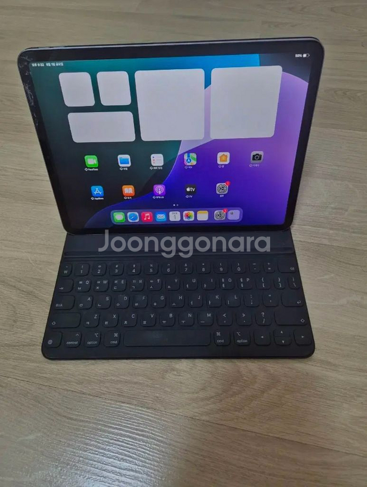 아이패드 프로 11 4세대 128GB 모델 판매합니다 모서리 부분에 깨짐이 있습니다(사진참조) 애플펜슬 2세대와 스마트 키보드 폴리오(새상품 약 10만원)과 신지모루 케이스 함께 드립니다. 얇고 가벼워서 휴대하기 좋습니다. 깨진 거 감수하고 싸게 팝니다.