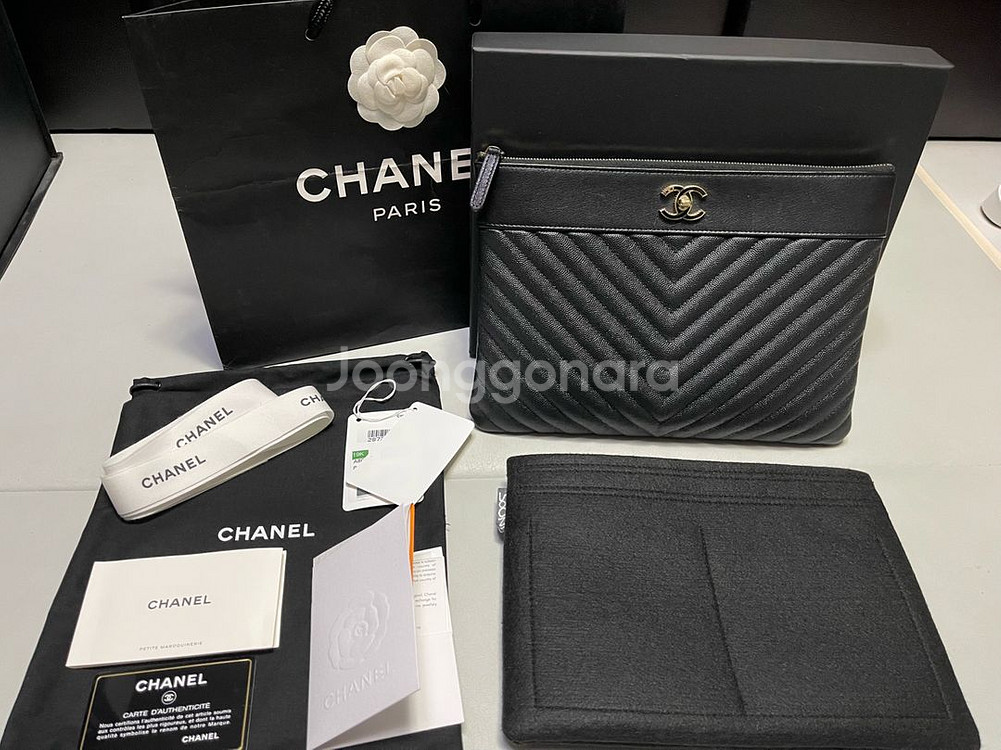 브랜드:샤넬 장식:금장 컬러:블랙 구성품:샤넬 클러치 본체,개런티카드,박스,더스트백,쇼핑백,영수증사본,택,이너백등.(사진에 구성품 다 드림) 귀한 샤넬 A80992 캐비어 마드모아젤 뉴미듐 28번대 클러치입니다.딱 두번 사용해서 사진보시면 아시겠지만 전체적으로 상태 깨끗하고 좋아요.이너백을 사용해서 내부도 진짜 깨끗해요.샤넬 다른 클러치보다 훨씬 귀한 제품이고 롯데타워에서 직접 구매한 것이며 풀세트입니다.영수증은 개인정보 삭제해서 사본으로 드리며 자세한 것은 사진 참고하시면 됩니다. 안심결제 안합니다.외부몰에서도 거래 안하구요.여기는 경기도 광주이며 택배는 가능하나 고가 상품이라서 직거래 선호합니다. 중고 특성상 교환/환불 불가, 신중한 구매 바랍니다.