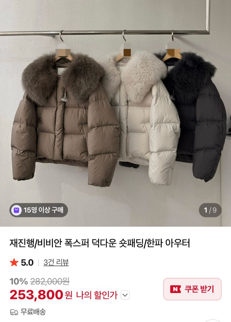 폭스퍼 덕다운 숏패딩 먹색 새상품