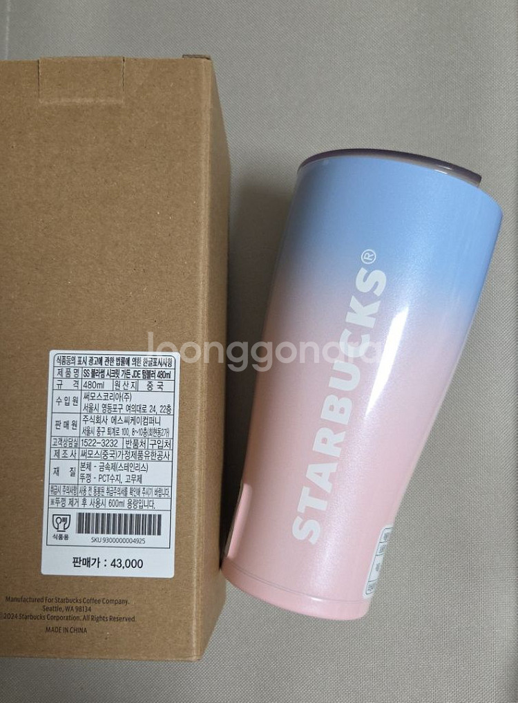 스타벅스 블라썸 시크릿 가든 JDE 텀블러 새상품 480ml, 뚜껑 제거후 사용시 600ml 텀쿠 없어요.
