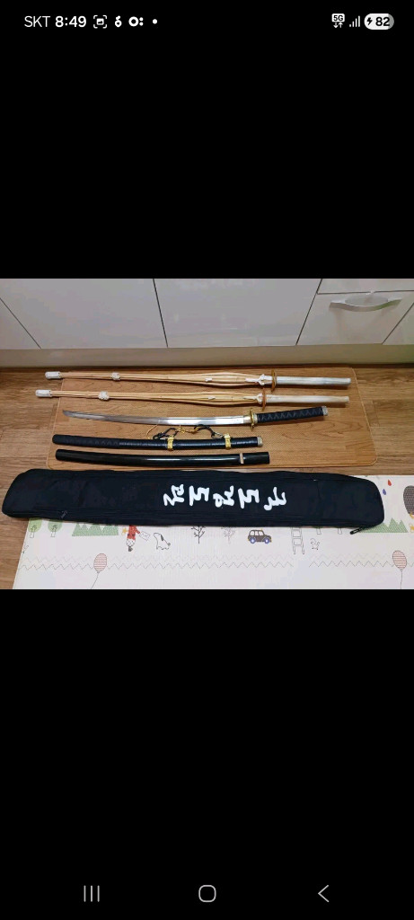 검도 수련용 가검과 죽검 입니다 사용하던것이라 사용감은 있습니다 가검집 2개 가검 1개 죽검 2개와 가방 일괄로 판매합니다 손잡이 스트랩 풀려서 안쪽 금장 떼어내고 미끄럼방지 수축테이프 해놨는데 불편하시면 학원에서 스트랩작업 해주니까 작업하셔도 될것 같네요 직거래는 청주이며 택배거래시 노리턴 착불이나 택배비 6천원입니다 추가됩니다