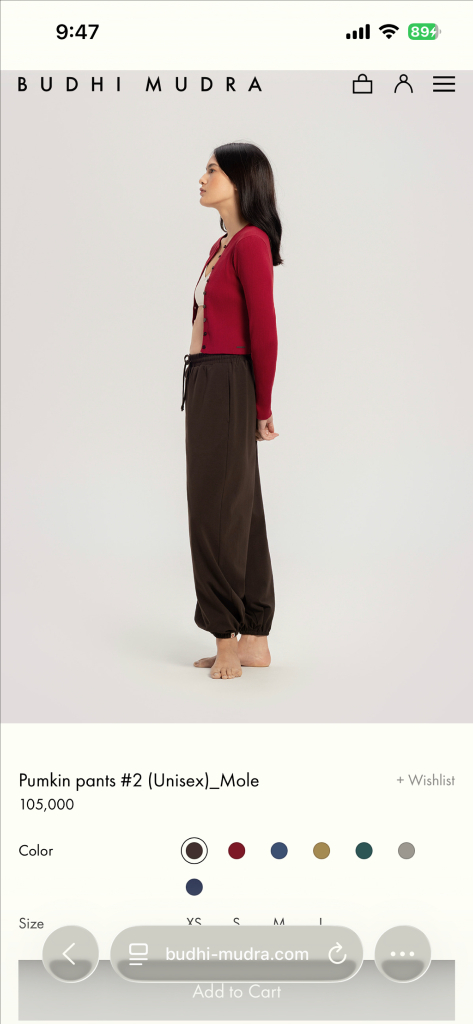 부디무드라 펌킨 팬츠 사진과 같이 새상품급으로 상태 매우 좋습니다 사이즈 에스 색상 몰컬러 1회착용 반값택배만 가능
