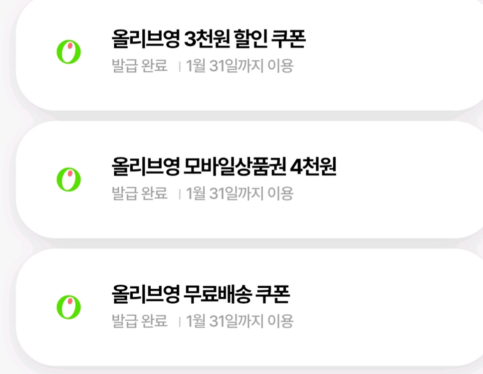 올리브영 4천원 모바일상품권+3천원 할인쿠폰+무료배송쿠폰