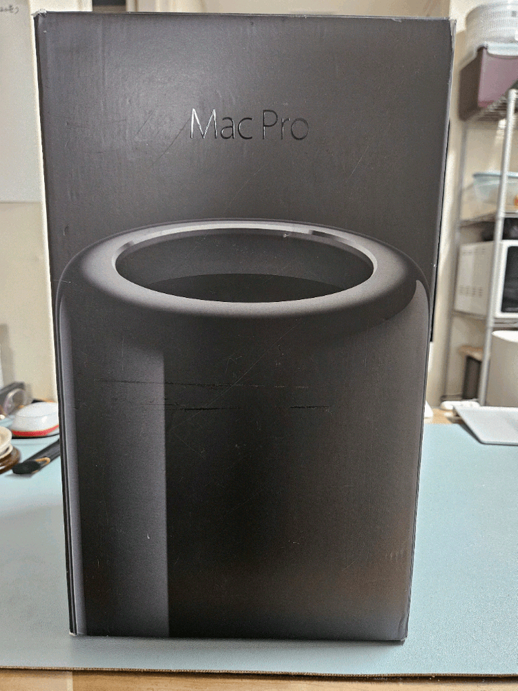 맥프로 6세대 2018년 제품 MacOS Sonoma(최신OS가능) 내부 청소 완료 cpu 12core 24thread ram 64gb 저장 nvme 2TB 그래픽 FirePro D500 (3gb 듀얼 6gb) 고성능 작업에 좋고 크기가 작아 공간활용 이동성에도 좋습니다(음악 영상 등 고성능 멀티작업)