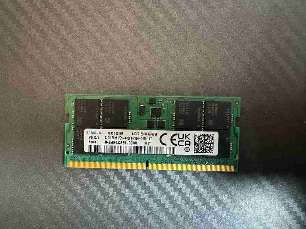 삼성전자 DDR5-4800 (32GB) 1개 - 노트북 전용 램입니다. 램을 교체하면서, 사용하지 않게된 램 판매합니다. 하자없는 정상 작동하는 램입니다. 사진에 보시면 DDR5-4800 용 32GB + 8GB 장착했을때 윈도우에서 총 40gb 정상 인식하고 있는것 확인 하실수있습니다. 노트북 전용 램이니 혼동 없으시기 바랍니다. 직거래 선호합니다.