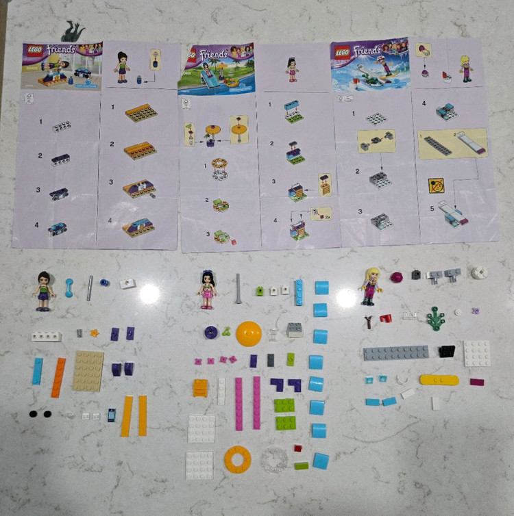 레고 프렌즈 시리즈 30400,30401,30402,41733 4세트 일괄판매합니다 사용설명서 포함이고 구성품 누락은 없으나 피규어 머리하나 눈색깔 다른아이로 대체되었습니다 처음부터 구성많은 블럭을 했더니 시시해해서 한번씩만 조립하고 통에 넣어두었습니다 아주 깨끗한 편이나 아이가 놀던 제품이라 생활스크래치는 있으니 예민하신 분은 패스해주세요 일반택배 포함으로 판매하며 안심결제 원하시면 바로 결제하시면 됩니다