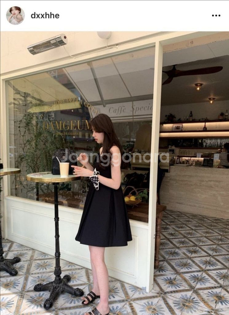 블랙 슬립 원피스예요. 가슴 부분에 레이스 트림 디테일이 있어서 로맨틱하고 예쁜 느낌이에요. 새상품이오니 관심 있으시면 연락주세요!