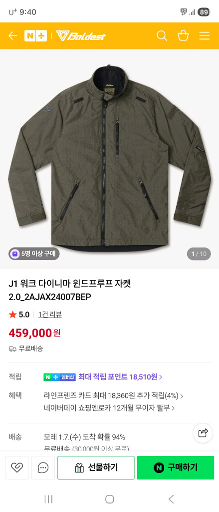 J1 워크 다이나마 윈드프루프 자켓 2.0 카키색 사이즈100입니다. 1회 착용했어요. 안전결제 가능합니다